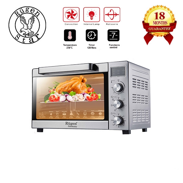 توان: 2200 وات ظرفیت: 50 لیتر جنس بدنه: استیل ضد زنگ جنس درب: شیشه پیرکسی پتعداد المنت:6 عدد تعداد سینی: 2 عدد