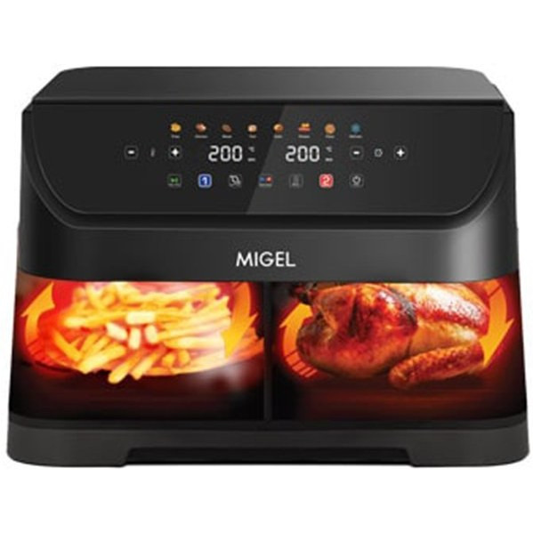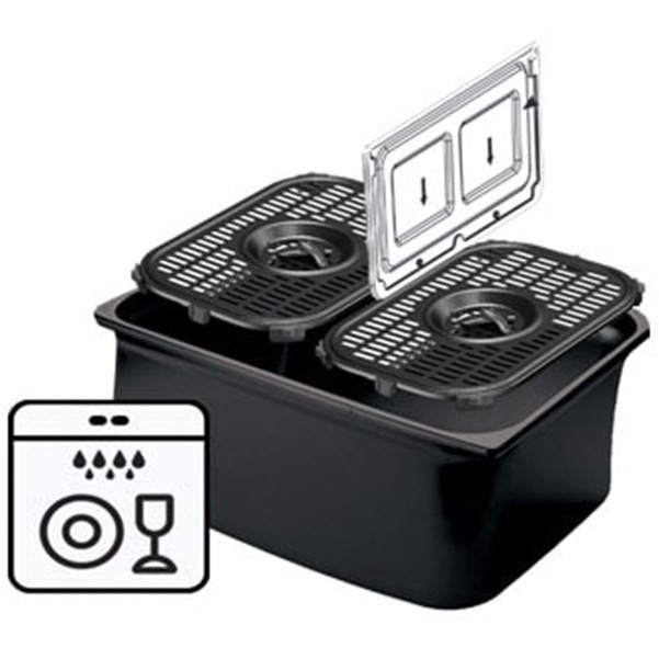 امکان اعمال تنظیمات مجزای پخت برای دو سبد پخت, امکان انجام فرایند پخت برای هر دو سبد به صورت همزمان, برخورداری از سیستم گردش هوای گرم, تکنولوژی مصرف روغن کم (14 میلی لیتر)
