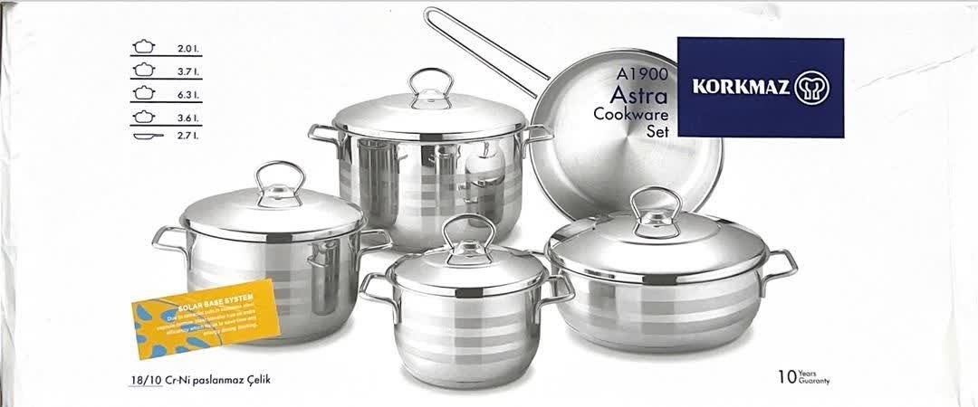 سرویس قابلمه ۹ پارچه تمام استیل کرکماز مدل Astra